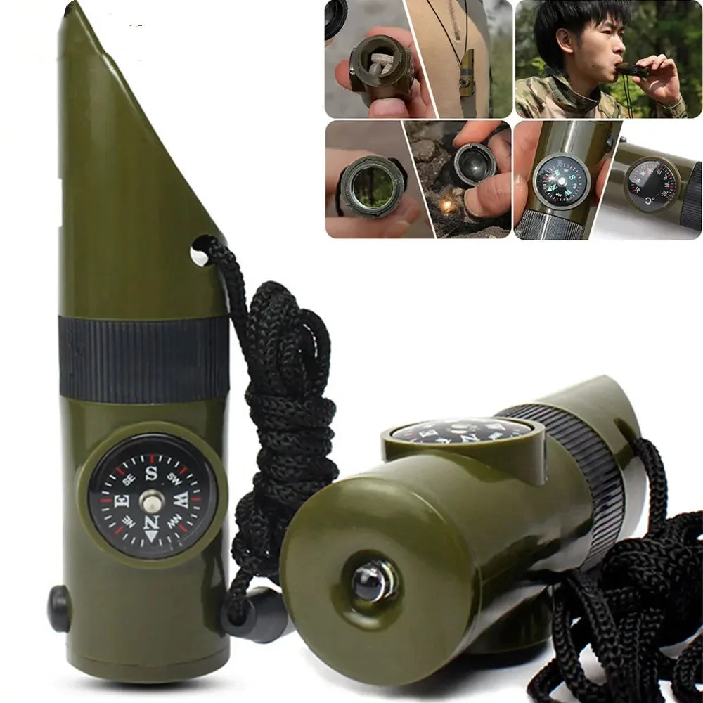 Be prepared for any situation with this multi-functional emergency whistle, designed for hikers, campers, and outdoor adventurers. More than just a whistle, it combines six essential tools in one compact device: compass, mirror, flashlight, magnifier, LED light, and thermometer.